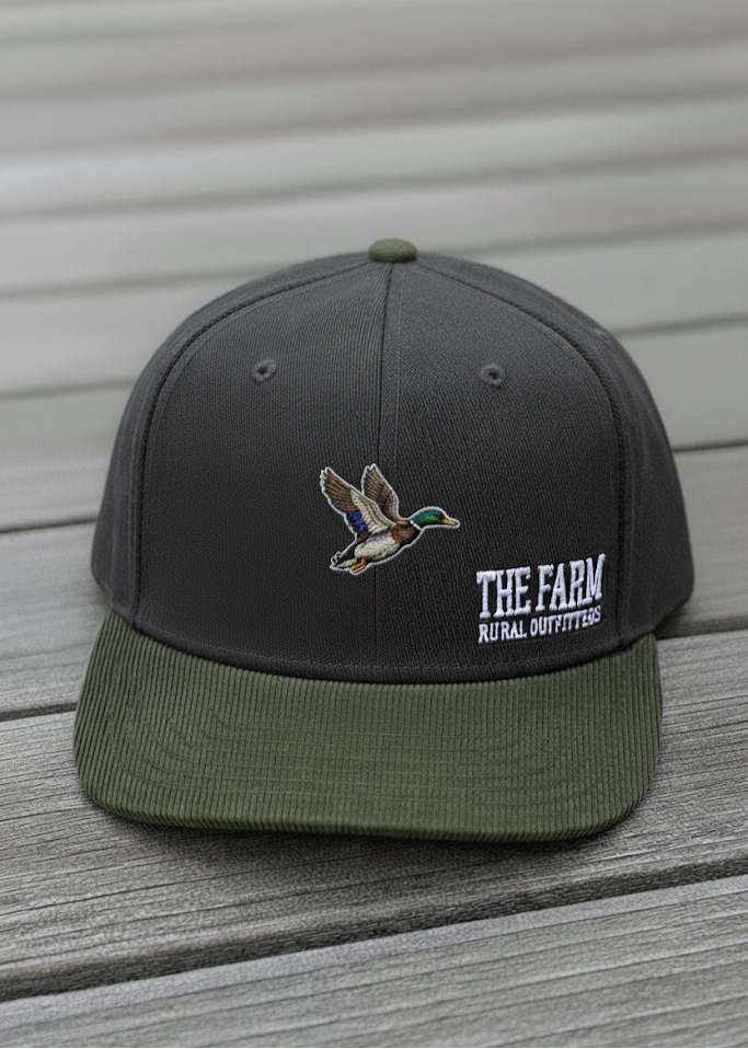 Built for the early mornings and muddy boots, the “Greenhead” Cap from The Farm Rural Outfitters celebrates every hunter’s favorite sight — a mallard cutting across the sky.
